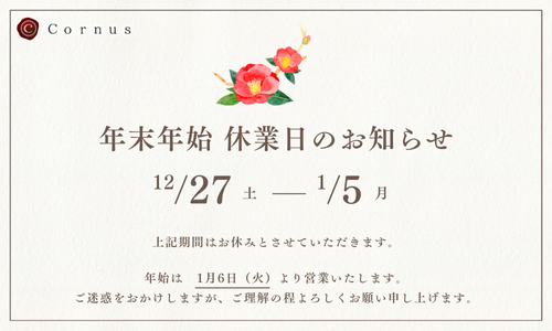 年末年始休業日:2025年12月27日(土)~2026年1月5日(月)