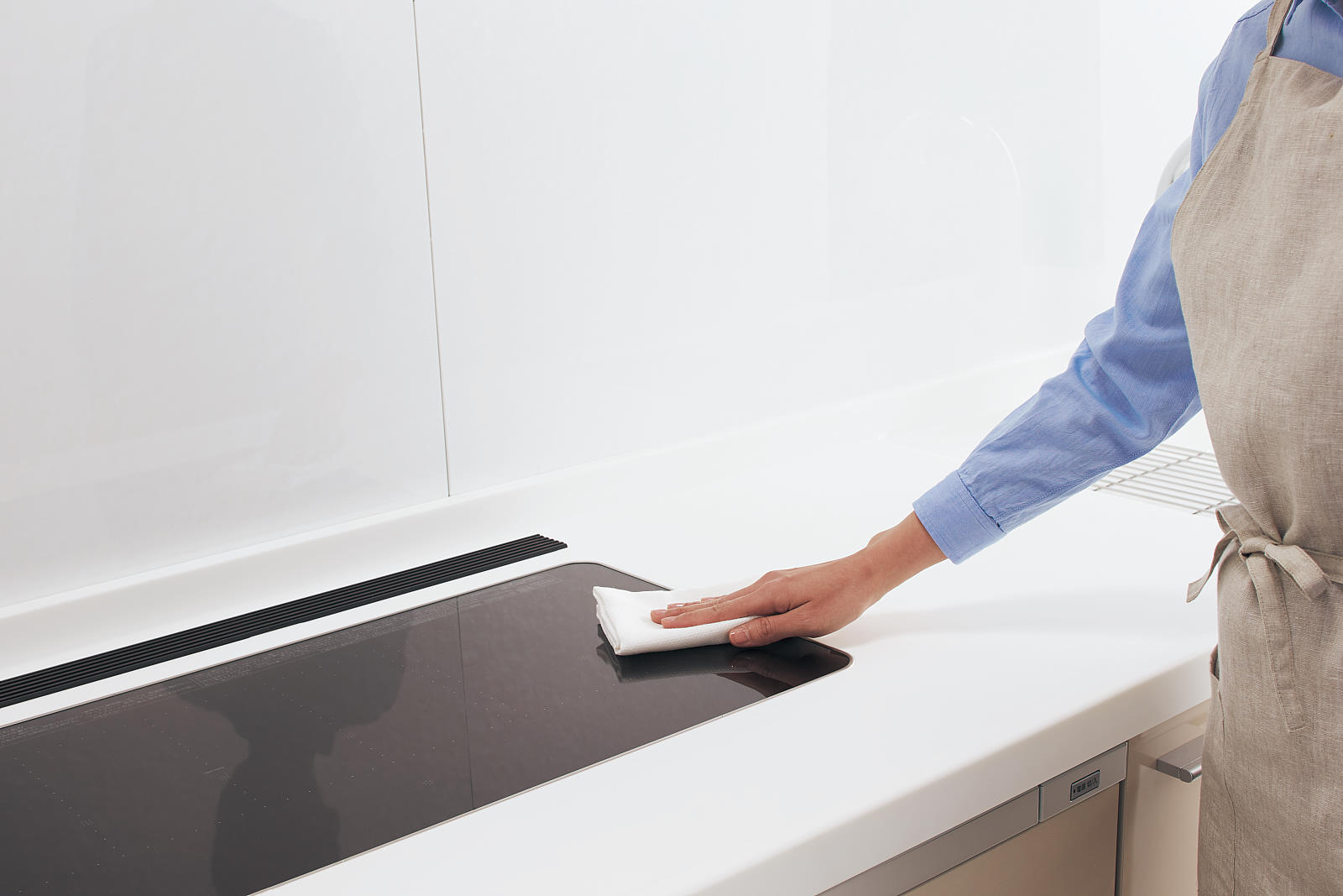 カウンターとの段差は約1.9mm。フラット設計でふき掃除も簡単です。