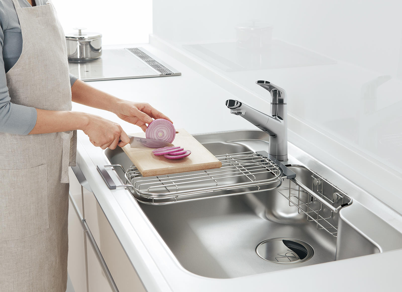 専用の「スラくるネット」を使うと、シンクの上も便利な作業スペースになります。洗いものや調理などの作業性がアップします。